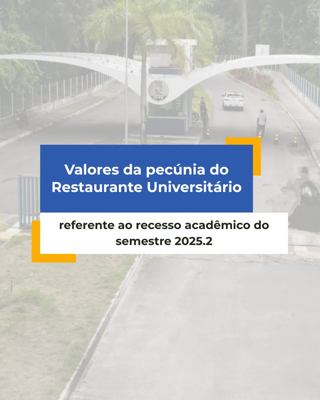 PRAPE divulga valores da pecúnia do Restaurante Universitário – Dez/2025 e Jan/2026