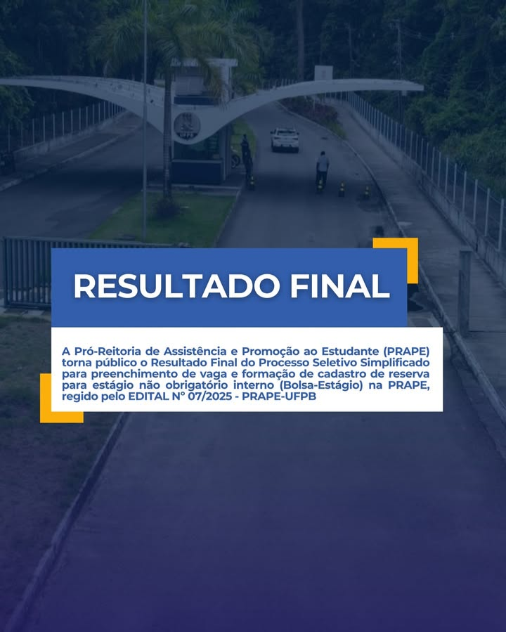 RESULTADO FINAL – Edital PRAPE 23/2024 (Campus IV – Mamanguape/Rio Tinto)