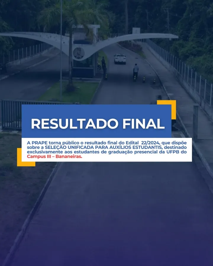 Resultado Final – Edital PRAPE 22/2024 (Campus III – Bananeiras)